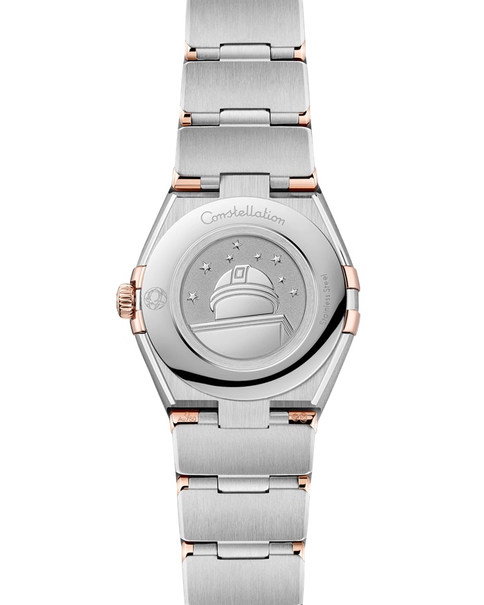 The 25 mm watch is presented with a case and mono-rang bracelet created from stainless steel and 18K Sedna™ Gold, with signature Constellation features including the polished claws, half-moon facets, and a diamond-paved bezel.