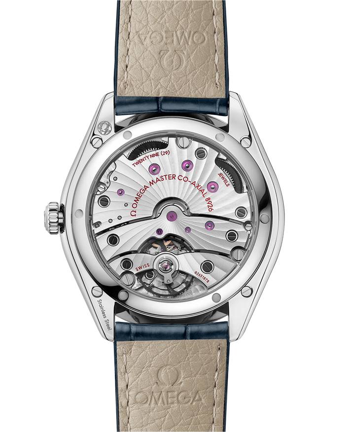 This model has a polished 40 mm stainless steel case, which is presented on a blue leather strap. The domed blue dial includes a Small Seconds display at 6H, along with hands and domed indexes in 18K white gold.