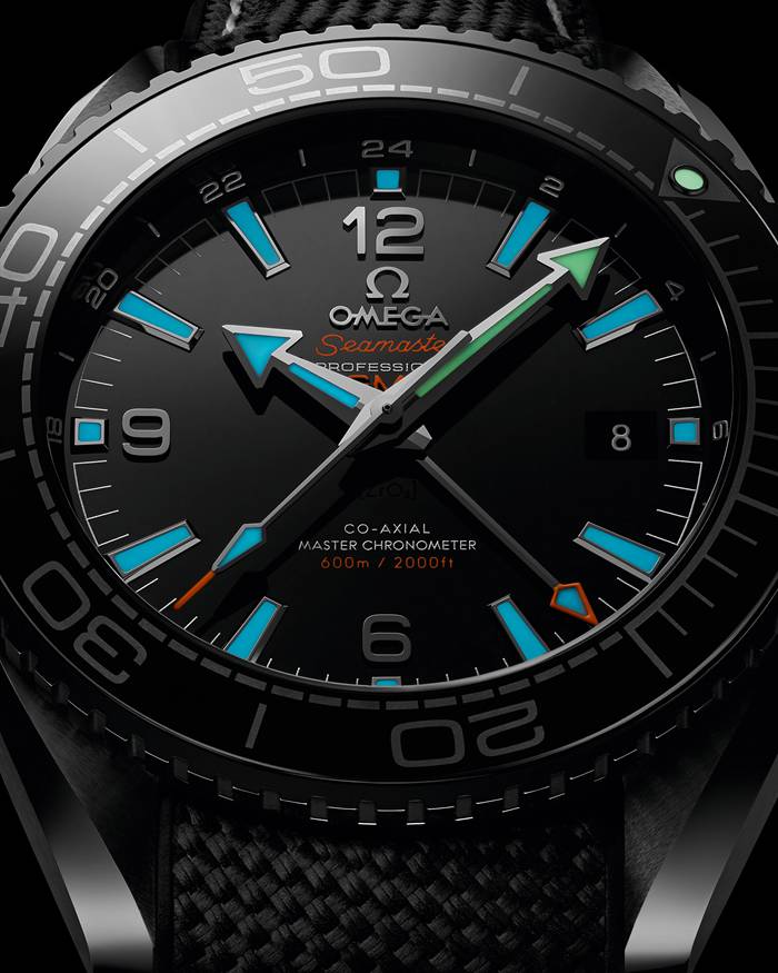 A new GMT ring has also been fixed on the dial while the diving scale and OMEGA logo on the crown have been decorated with Liquidmetal™. The hands are 18K white gold and are coated in white Super-LumiNova.In another first, OMEGA has created an oriented screw-in caseback so that the engraved wording sits pleasingly in position. This has been achieved through OMEGA’s new and patented ceramic Naiad Lock.