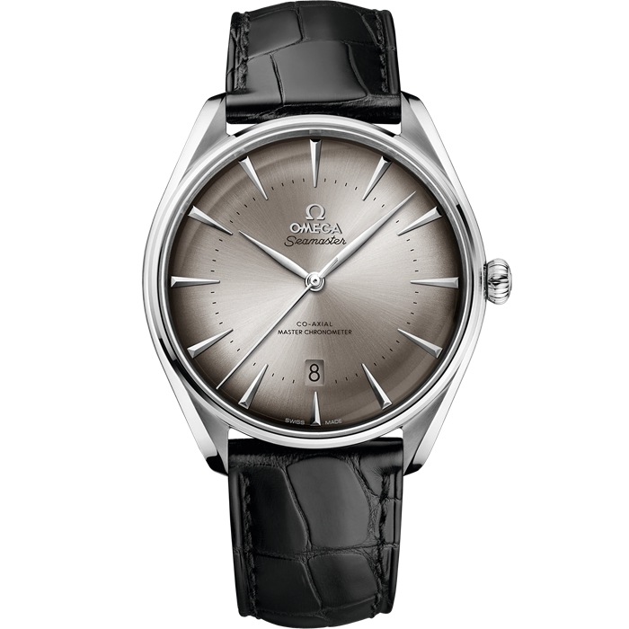 This 39.50 mm watch has a stainless steel case and a smoky light grey lacquered domed dial with a captivating gradient effect. The hands, logo and indexes are 18K white gold and there is a date window at 6 o’clock.