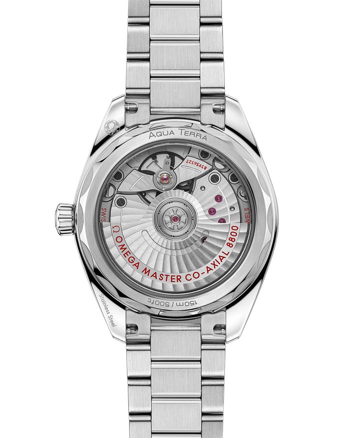 The Seamaster Aqua Terra is a superb tribute to OMEGA’s rich maritime heritage. This 34 mm model, has a symmetrical case and crown in fully polished stainless steel and a wave-edged design featured on the back.