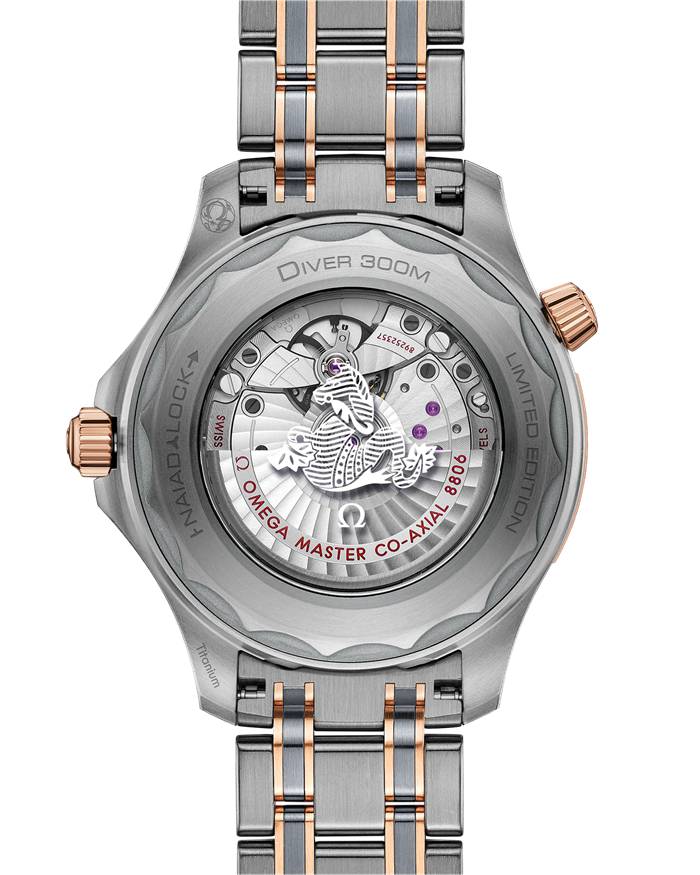 This 42 mm model is a Limited Edition of 2,500 pieces and features a brushed case made from grade 2 titanium, with a crown, bezel ring and helium escape valve in 18K Sedna™ gold. In contrast, OMEGA has used tantalum to create the base of the bezel for a distinctive blue-grey tone.